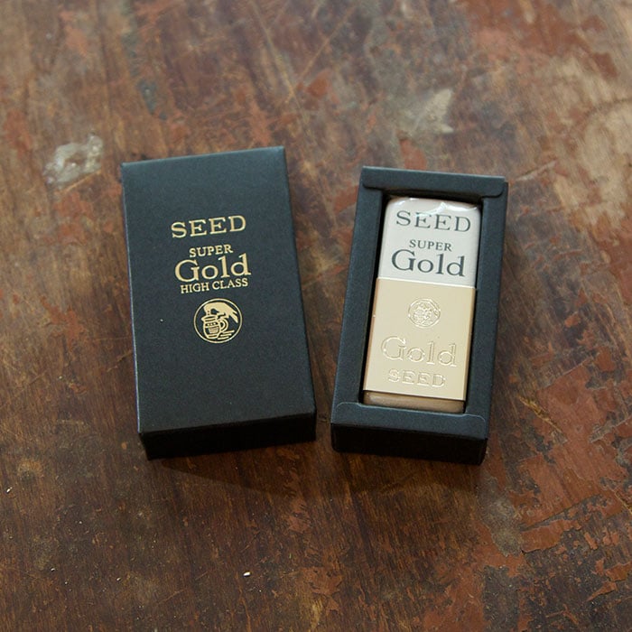 This Seed Super Gold Eraser is considered the finest production eraser in the world. Imported from Japan, this eraser comes with a metal sleeve and a beautiful gift box.